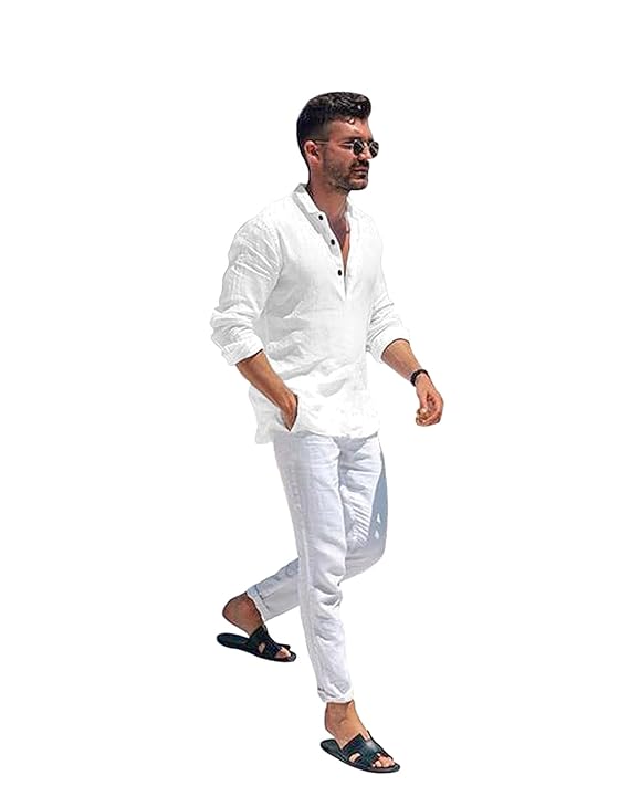 Plain Cotton Blend Linen Slim Fit Kurta Pyjama Set