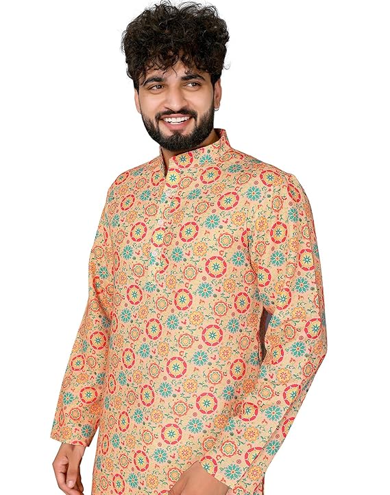 ₹600.00 – ₹700.00Price range: ₹600.00 through ₹700.00Floral Regular Men’s Cotton Blend Printed Kurta with Full Sleeves Ankle Length
