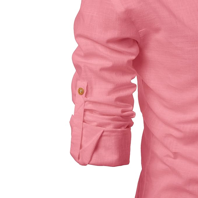 Cotton Blend Mandarin Collar Self One Design Full Sleeve Casual Short