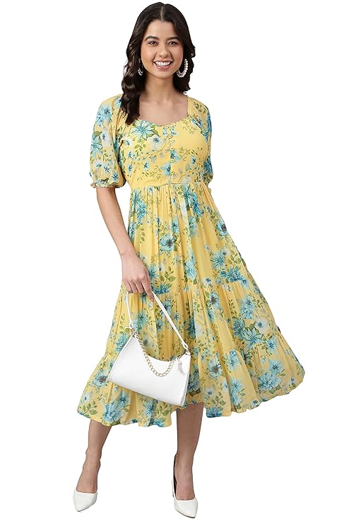 Fit and Flare Knee Length Georgette Floral Printed Flared Western Dress