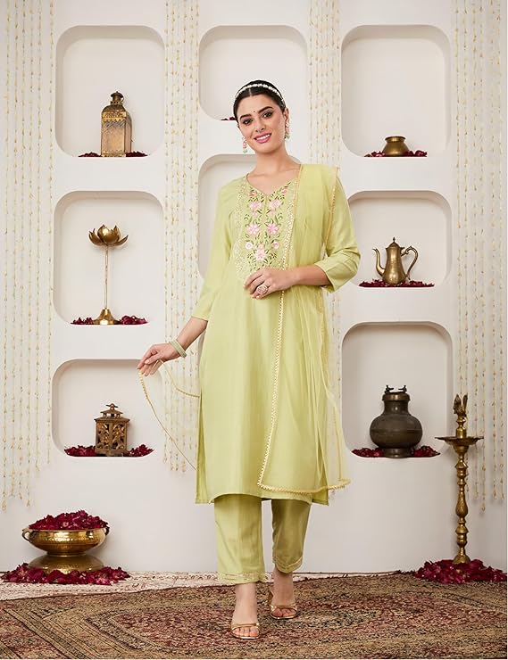 Women’s ‘s Embroidered Kurta Pant Set with Dupatta